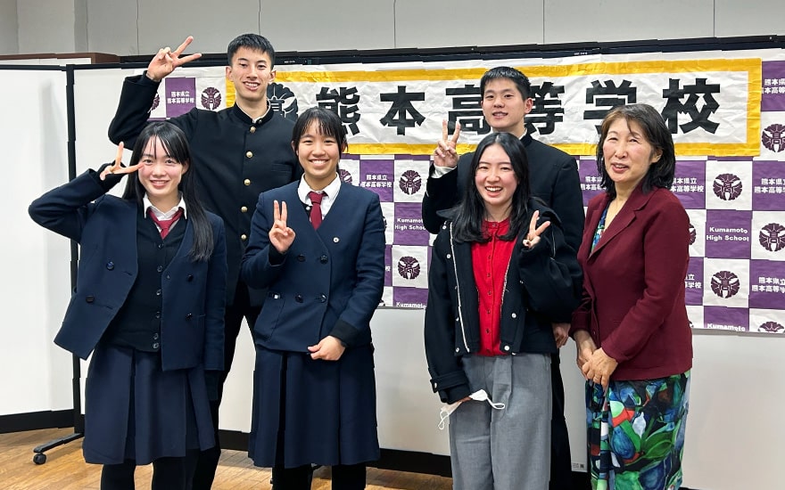 笹川奨学生一期生の古川さんにも参加してもらった熊本高等学校での説明会。進学先であるUCバークレーでのキャンパスライフには多くの質問が集まりました。