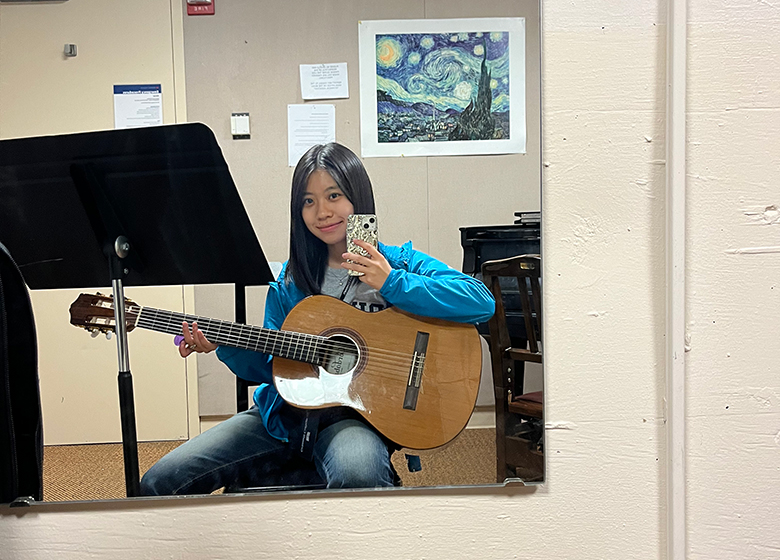 多様な才能を持つ友人に囲まれ、刺激に満ちた日々を送っています。母国語に加え、第2言語・第3言語を流暢に話す友人も多く、学業以外にも秀でた強みを持っています。例えば、ユースチームで競技経験を積んだ友人や、幼少期から作曲活動を続けている友人など、話を聞くだけでもモチベーションが高まります。私も自然と「新しい分野に挑戦して、強みを見つけたい」という気持ちが育まれました。今学期からこれまで未経験だったギターを習い始め、スペイン語の学習にも本格的に取り組んでいます。今後もスペイン語にとどまらず、さまざまな言語に触れながら、より広い世界に目を向けていきたいと考えています。